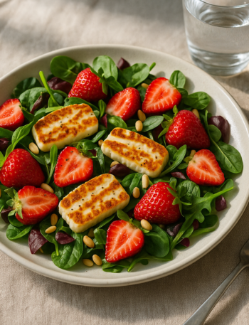 Halloumi-mansikkasalaatti