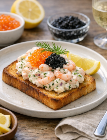Toast Skagen (katkarapu-mätitahna paahtoleivällä)